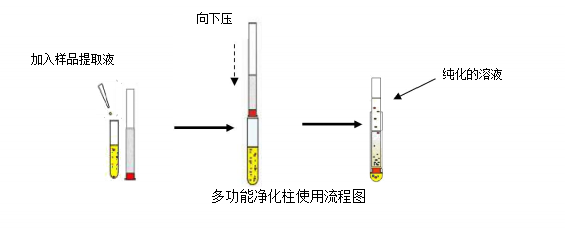 1、将净化柱橡胶头从试管顶端插入装有上述样品液试管中,并向下压净化柱至试管底端;